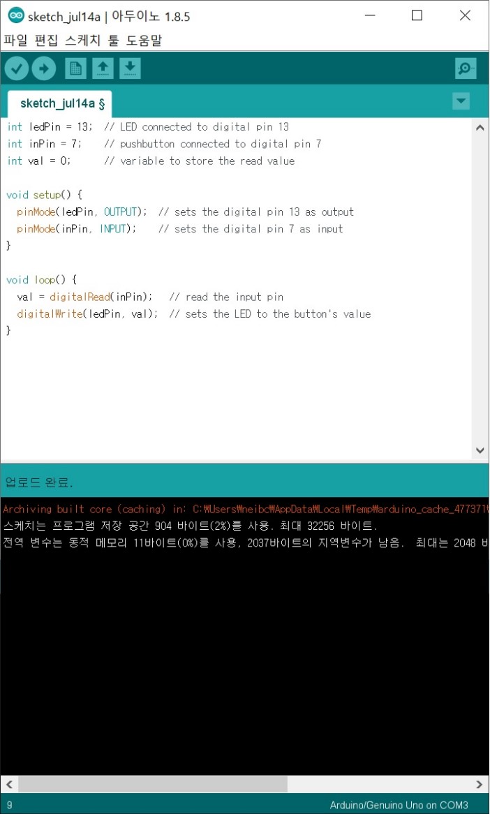 pinMode(inPin, INPUT); // sets the digital pin 7 as input