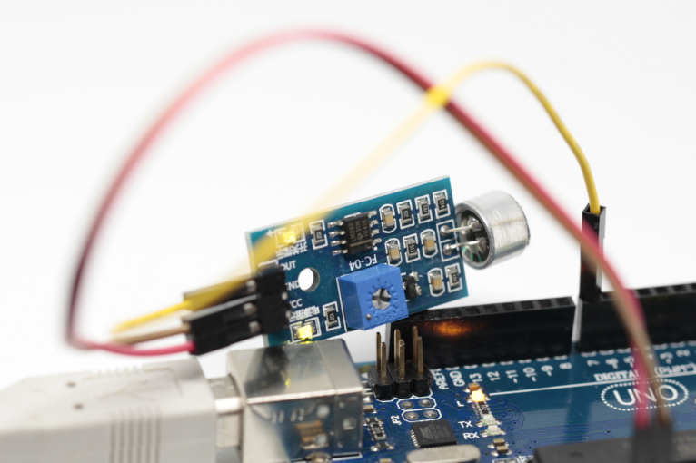 일정 크기 이상의 소리를 감지하면 반응하는 소리 검출 센서를 통해 소리 발생 유무를 탐지할 수 있다.