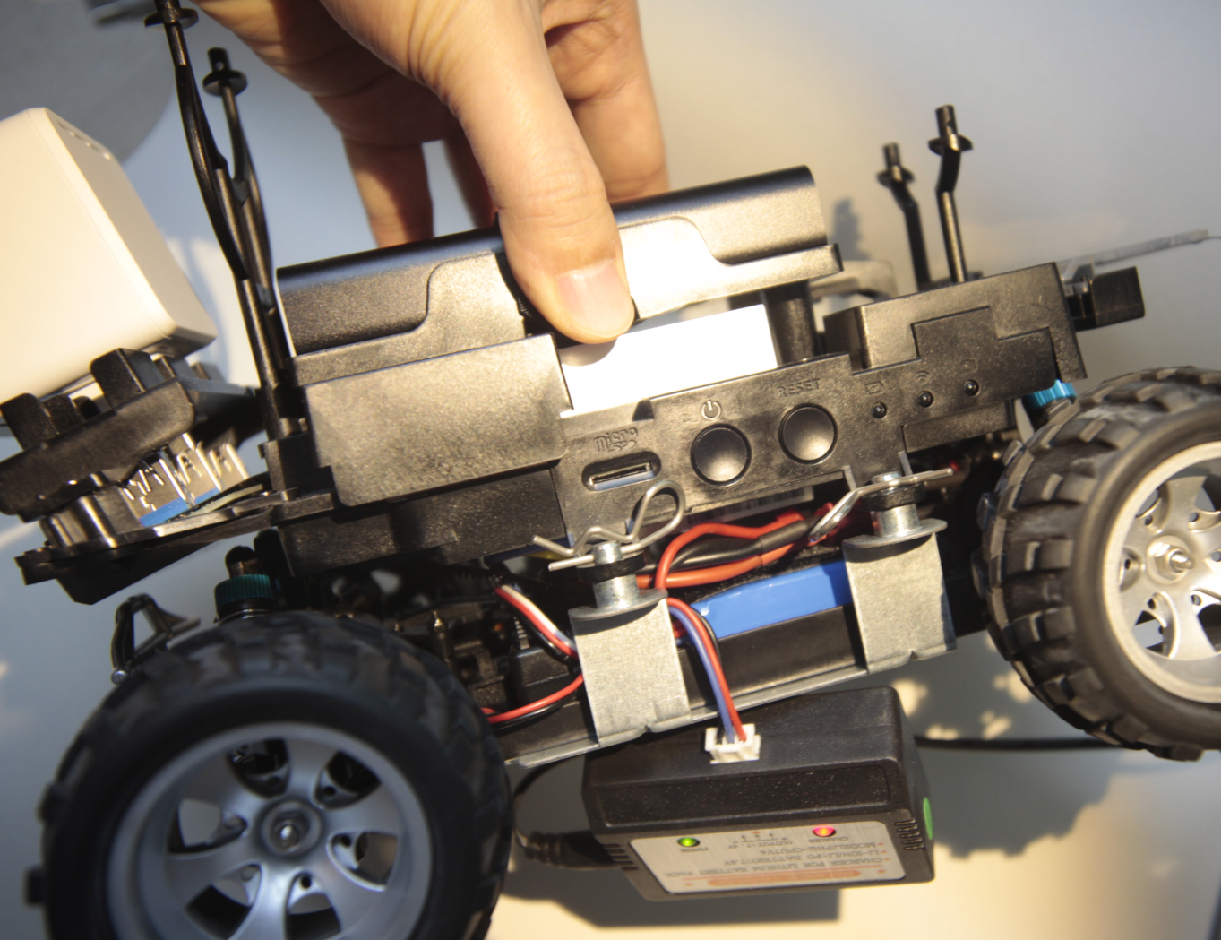 AWS DeepRacer Evo 차량에는 기존 AWS DeepRacer 차량, 기존 카메라와 스테레오 비전을 형성하는 추가적인 4메가픽셀 카메라 모듈, 스캐닝 LiDAR, 스테레오 카메라와 LiDAR 모두에 맞는 외판, 몇 가지 액세서�